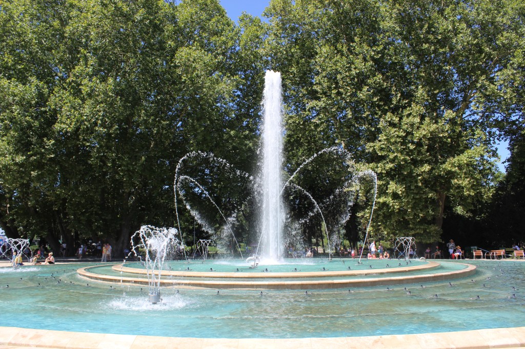 One of the features on Margaret Island in Budapest is a Music Fountain – the kind that’s programmed to have the water dance in time to music. It’s touristy as hell, but it’s also a beautiful spot, so of course I absolutely love it.
