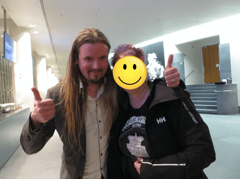 There then ensued a silent internal debate. “I should go talk to him,” was followed by, “No, I never know what to say. I’m a huge fan? Like he hasn’t heard that a million times before.” But then I remembered his Facebook posts about being nervous about how the opera would be received and I thought, “Maybe he’d like to know someone would travel so far for more than just his metal music.” This was quickly shot down by, “He’s clearly with a bunch of friends and family. It would be rude to interrupt.”