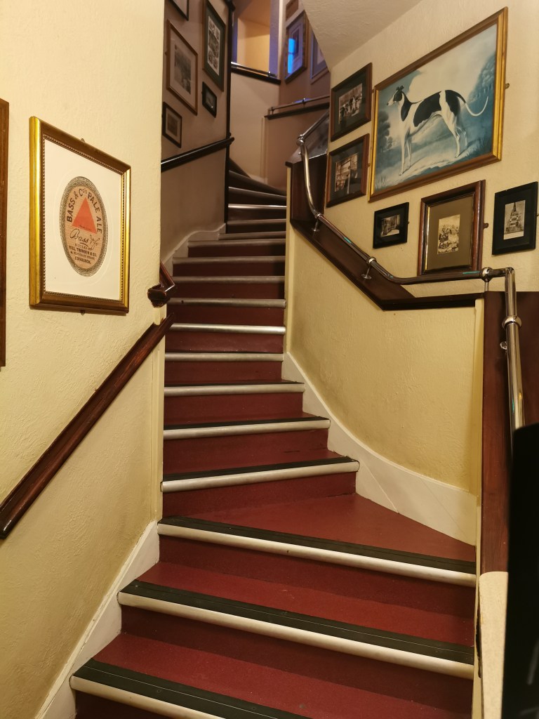 Sometimes the path leading to the restroom is the highlight, like this stairwell in Edinburgh’s St. Bernard’s Bar: