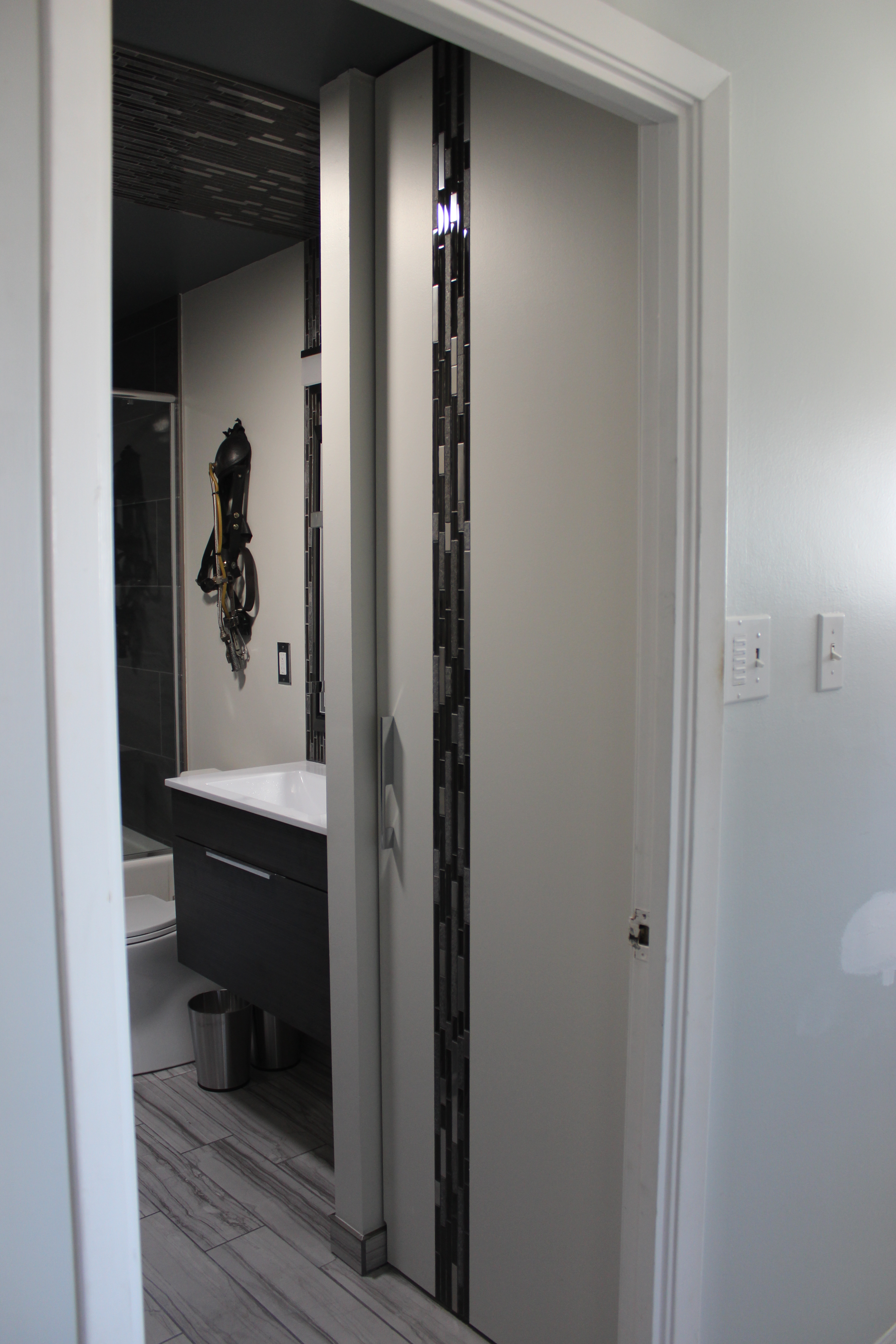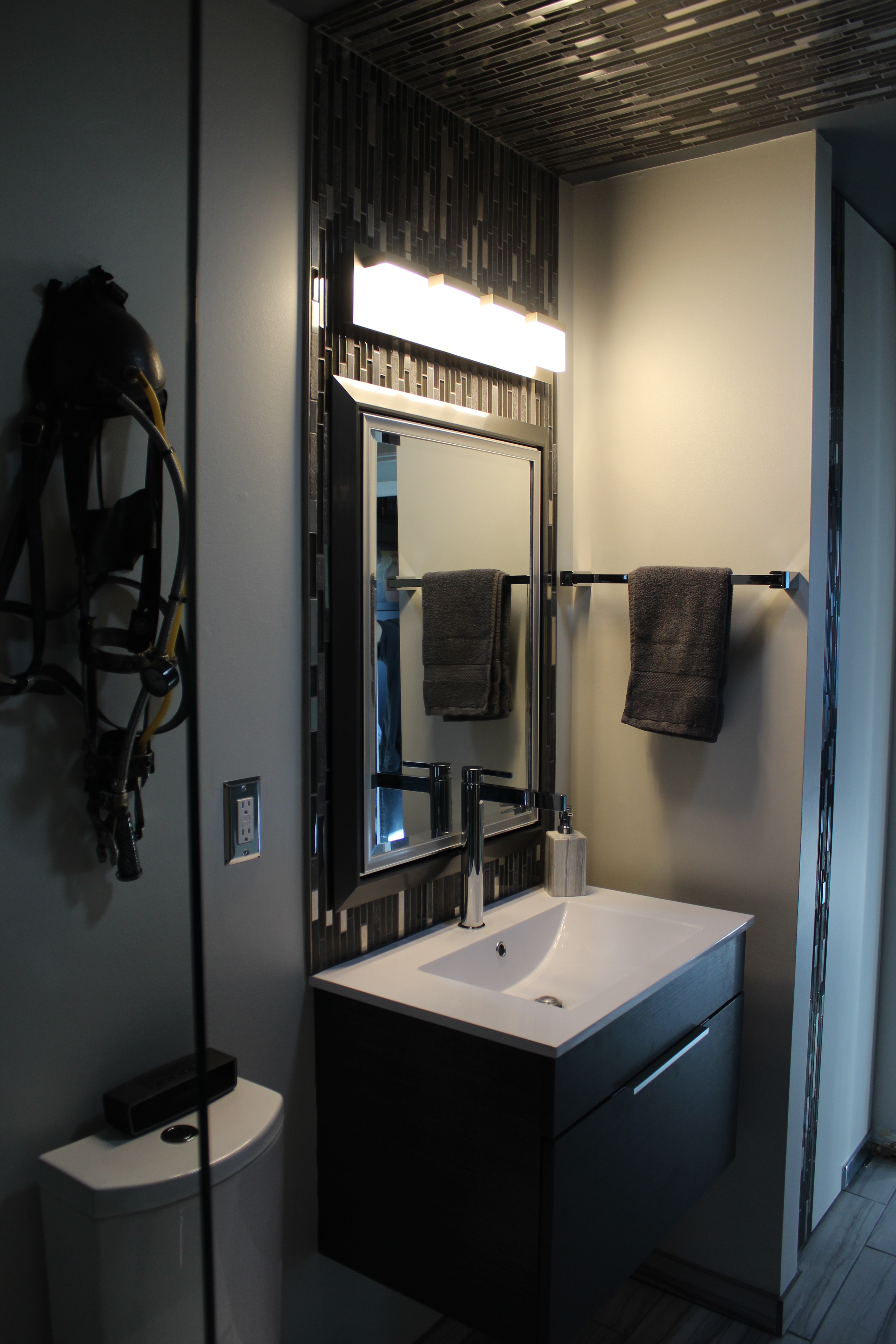 Although I did do a practice run, putting an industrial themed restroom/laundry room from scratch in the basement, first.