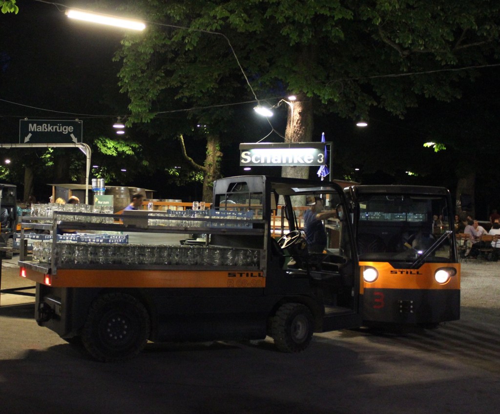 Then there are the logistics of it. Because when you’re serving thousands, loading empties onto a tray to carry back to the kitchen on foot isn’t very efficient. No, a fleet of small trucks does a much better job.