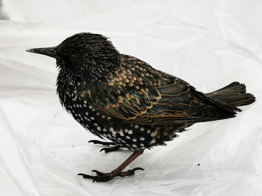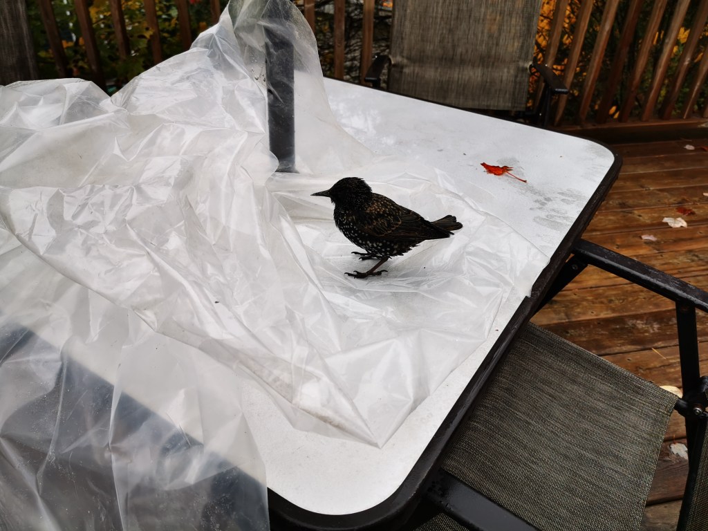 Now that the bird was in the bag, it didn’t want to come out. I had to nudge it along, hoping that once it was outside and got its bearings, it would fly away. Unfortunately, while its wing and leg movements indicated it wasn’t injured, it also didn’t seem in any rush to go anywhere. It also kept rubbing its face on its wings. When I took a closer look, I realized it was keeping its eyes shut.