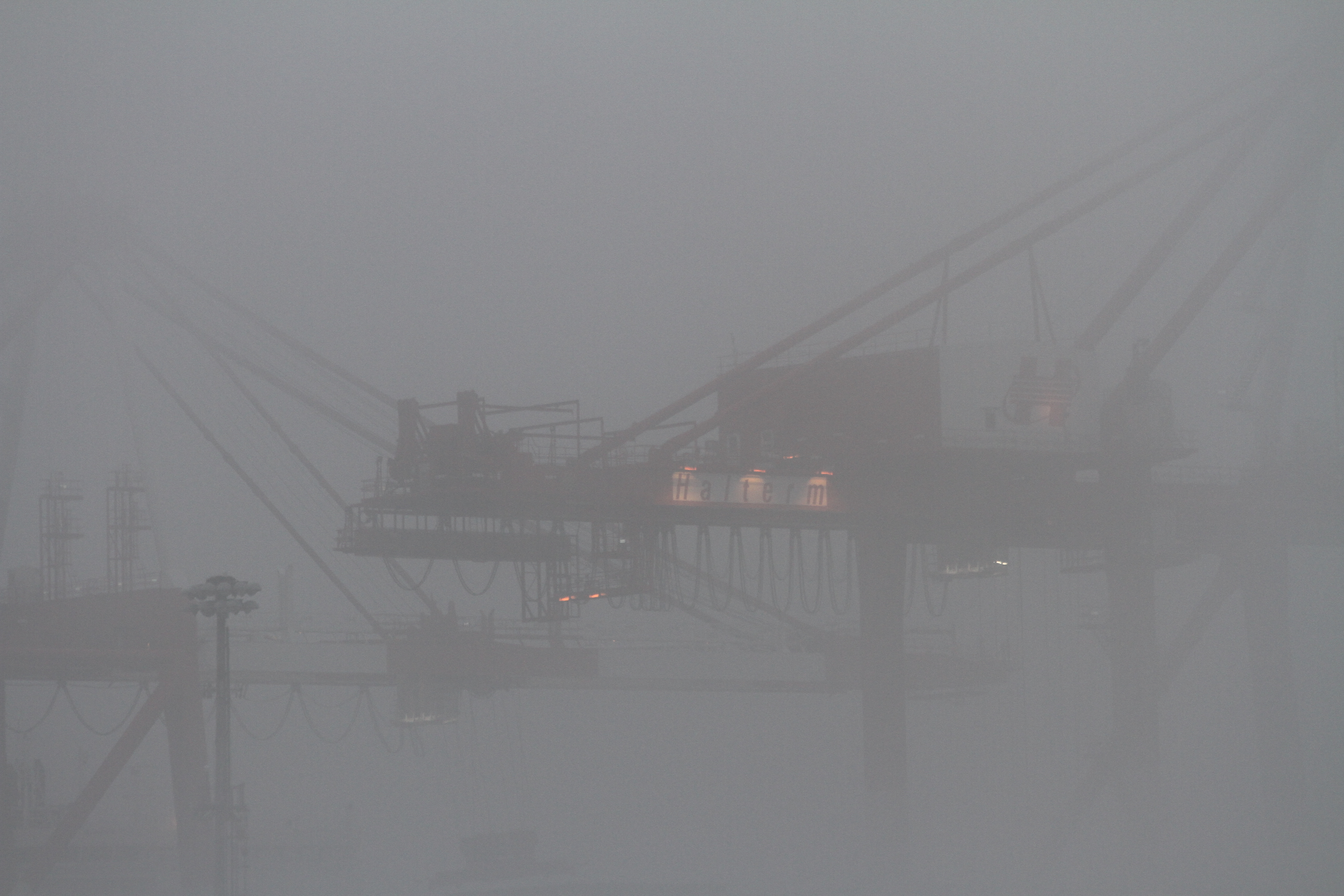 On top of which, there’s the Ceres terminal next door, with cranes that loom out of the fog like some sort of invading alien mechs.