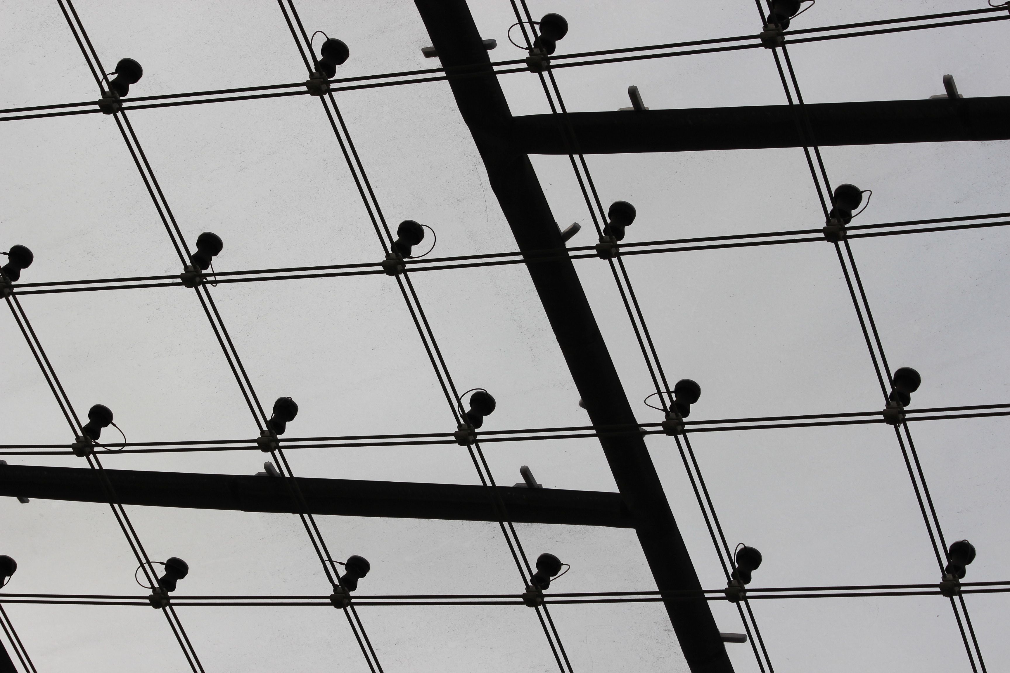 Inside the stadium, there’s an interesting juxtaposition between the swooping lines of the canopies, and the linear nature both of the structure holding it all together, and the banks of seats.