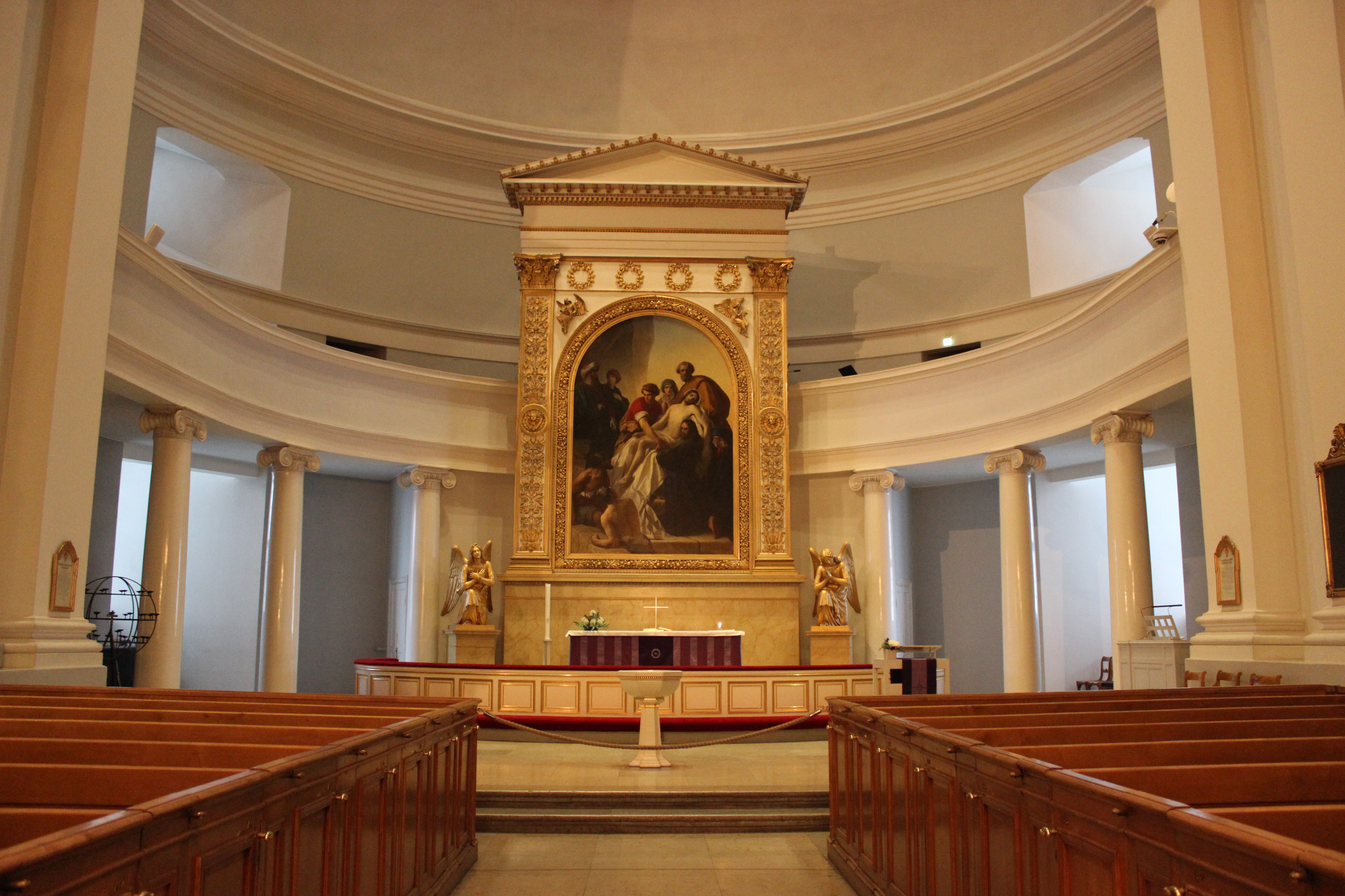The chapel is right in the heart of downtown, in the middle of a shopping district and within spitting distance of the train station. It was built as a place where people could find a moment of quiet in a busy area.
