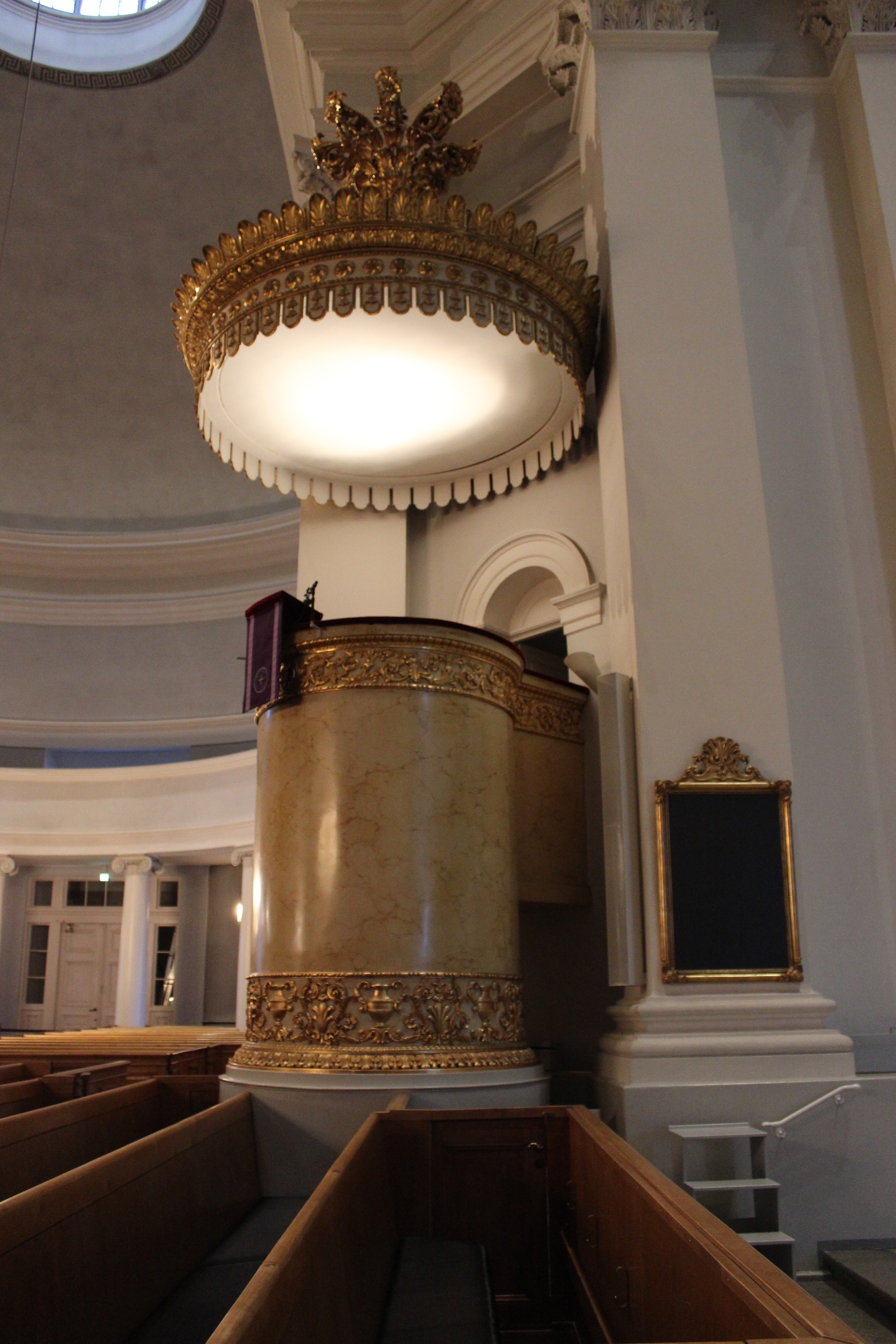 The church itself fell somewhat above Helsinki Cathedral on the grandeur spectrum. It had a much higher ceiling, and a bit more in terms of flourishes. But it still felt a bit … understated. As churches go.