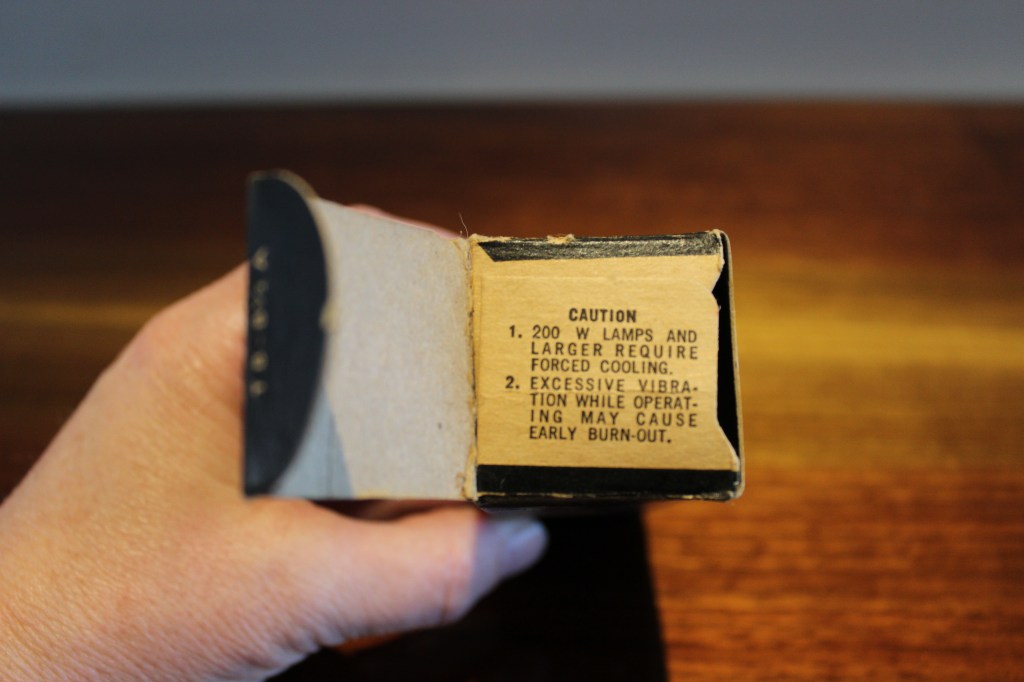 The address is “New York 19.” The “19” indicates the Postal Zone, something that the US Postal Service began using in larger cities in 1943 to improve mail delivery efficiency. Five-digit ZIP codes were introduced in 1963. (Side note: Today I learned that ZIP stands for Zone Improvement Plan.) Based on those dates, that makes these bulbs somewhere between 58 and 78 years old – although considering that five-digit ZIP codes didn’t become mandatory until 1967, they could be as young as 54.