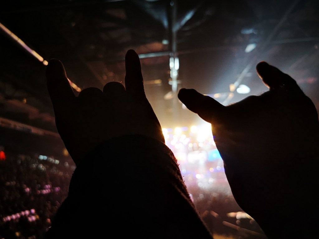 We needn’t have worried. After a quick meal at The Split Crow, we made our way to the venue – the Metro Centre, not Scotiabank Centre, thank you very much – went through security, checked out the merch booth – No ladies tees at all? Seriously? – and soon found ourselves sliding into our seats, drinks in hand, like it hadn’t been several years and a whole pandemic since we’d last done so.