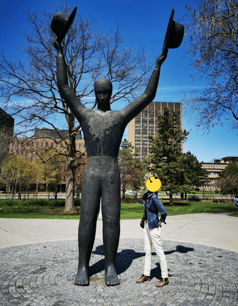 We can never really escape our past. The best we can hope for is to integrate it into our present in a healthy way. What was intended to be a casual stroll around Dow’s Lake showed me that I’ve taken a big step in that direction. So I couldn’t stop smiling as Wendy, one of my dearest and longest term – no way in hell am I saying ‘oldest’ – friends struck poses next to The Man With Two Hats. Here I was, connecting with a beautiful, treasured friend of near on 40 years, complemented by a piece of art about connections, surrounded by things that reminded me of connections with family and nature and music and history.